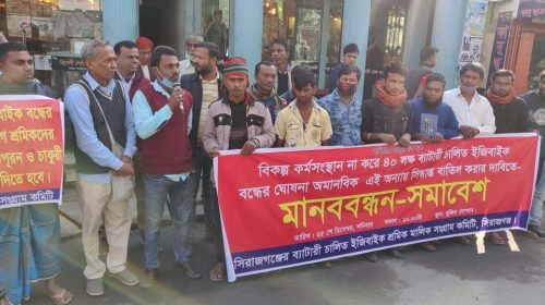 যুগের কথা প্রতিবেদক : বিকল্প কর্মসংস্থান না করে ৪০ লক্ষ ব্যাটারী চালিত ইজিবাইক বন্ধের ঘোষণা অমাণবিক, এ অন্যায় সিদ্ধান্ত বাতিল করার দাবীতে মানববন্ধন ও সমাবেশ অনুষ্ঠিত হয়েছে। শনিবার সকালে ৬…