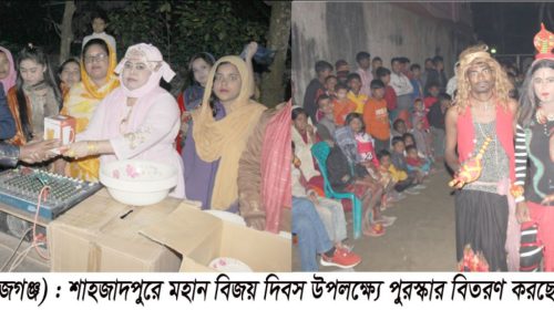 শাহজাদপুরে মহান বিজয় দিবস উপলক্ষ্যে গত বুধবার বিকেলে দরগাপাড়া মহল্লায় সাংস্কৃতিক অনুষ্ঠানসহ নানা ধরণের কর্মসূচী পালন করা হয়। এদিন বিকেল দৌঁড় খেলা, চেয়ার খেলা, পানি পানের প্রতিযোগিতাসহ ৮টি ইভেন্টে খেলা…