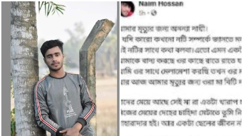 যুগের কথা প্রতিবেদক : মৃত্যুর জন্য প্রেমিকা ও তার মাকে দায়ী করে প্রেমিকার ছবিসহ ফেসবুকে একটি স্ট্যাটাস দিয়ে সিরাজগঞ্জের রায়গঞ্জে এক কলেজছাত্র গলায় ফাঁস দিয়ে আত্মহত্যা করেছে। শুক্রবার (৩ ডিসেম্বর)…