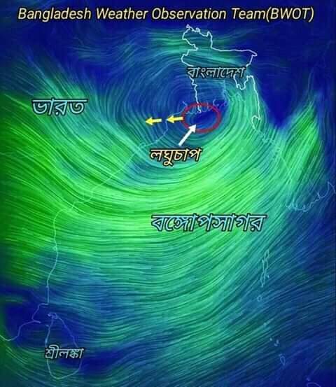 উত্তর বঙ্গোপসাগর ও তৎসংলগ্ন সুন্দরবন উপকূলের নিকটবর্তী এলাকায় আবারো একটি লঘুচাপ সৃষ্টি হয়েছে।...(চিত্রে লাল বৃত্তাকার অংশে) লঘুচাপটি আগামি ৩৬ থেকে ৪৮ ঘন্টার মধ্যে কিছুটা শক্তি বৃদ্ধি করে সুস্পষ্ট লঘুচাপ বা…