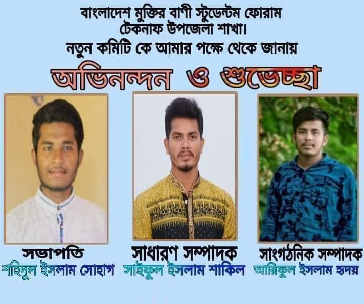 মানবিক, সেবামূলক ও প্রতিরোধমূলক কাজকে স্বাগত জানিয়ে বাংলাদেশ মুক্তির বাণী স্টুডেন্ট'স ফোরাম কক্সবাজার জেলার আওতাধীন টেকনাফ উপজেলা মুক্তির বাণী স্টুডেন্ট'স ফোরাম কমিটি প্রকাশ করেন জেলা কমিটি। উক্তি কমিটিতে সভাপতি শহীদুল…