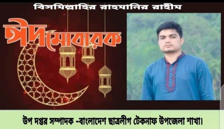 আসন্ন পবিত্র ঈদুল আযহা উপলক্ষে টেকনাফ উপজেলা বাসীকে আন্তরিক শুভেচ্ছা ও মোবারকবাদ জানিয়েছেন টেকনাফ উপজেলা ছাত্রলীগের উপ দপ্তর সম্পাদক তারেক মোহাম্মদ নুর। এক শুভেচ্ছা বার্তায় তিনি বলেন, ত্যাগের মহিমায় মহিমান্বিত…