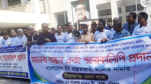 যুগের কথা প্রতিবেদক : ইট প্রস্তুত ও ভাটা স্থাপন আইন সংশোধন এবং কয়লা সমস্যা সমাধানের দাবিতে মানববন্ধন করেছে সিরাজগঞ্জ ইট প্রস্তুতকারি মালিক সমিতি ও শ্রমিকগণ। রবিবার (২৭ নভেম্বর) সকালে সিরাজগঞ্জ…
