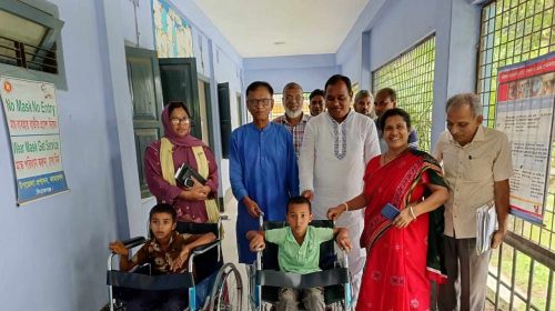 কামারখন্দে শিশুদের মাঝে হুইল চেয়ার বিতরণ